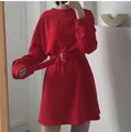 7 colors long sleeve dress women spring autumn korean style dress ladies solid color loose t shirt dress women with belt (X218)