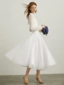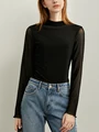 Ami Spring Casual lace long-sleeved T-shirt women's thin fall solid color net yarn semi-high collar
