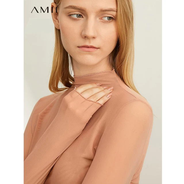 Cheap Offer Ami Spring Casual lace long-sleeved T-shirt women's thin fall solid color net yarn semi-high collar with FREE Shipping Worldwide!