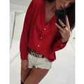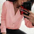 Special Offer Casual v Neck Women Tops And Blouse Ladies Long Sleeve Button Office Shirts 2019 Female Solid Autum with Free Shipping Worldwide!