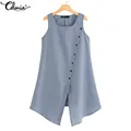 Celmia 2020 Summer Plus Size Women Long Shirts Casual Sleeveless Blouse Asymmetrical Tunic Tops Button Down Blusas Femininas 5XL