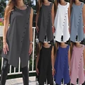 Special Price Celmia Fashion Women Tops Retro Split Blouses 2020 Summer Sleeveless Buttons Casual Asymmetrical Tu with FREE Worldwide Shipping!