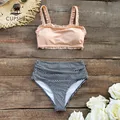 Best Price CUPSHE Ruffled Bandeau Bikini With High-waisted Bottom Bandeau Swimsuit Two Pieces Swimwear Women 2 with FREE Shipping Worldwide!