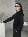 [EAM] 2020 New Spring Autumn High Collar Long Sleeve Black Loose Pocket Drawstring Big Size T-shirt Women Fashion Tide JQ017