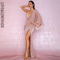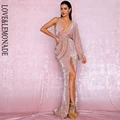 Special Offer LOVE&LEMONADE Sexy Rose Gold V-Neck Single Sleeve Sequins Split Party Maxi Dress LM81848 with FREE Worldwide Shipping!