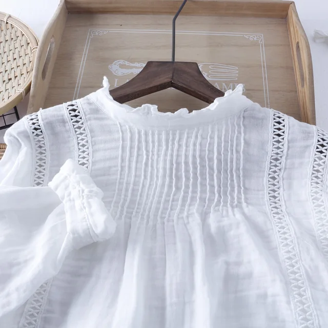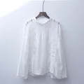 Palace hollow out patchwork ruffled collar long sleeve Cotton yarn white shirt blouse mori girl