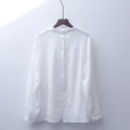 Back button cotton embroidery lacing stand collar long sleeve shirt blouse female 2019