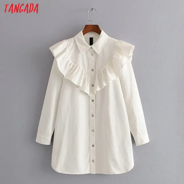 Best Offer Tangada women elegant white denim dress ruffles 2020 spring fashion long sleeve lady shirt dresses with FREE Worldwide Shipping!