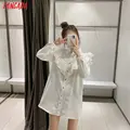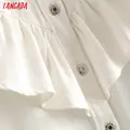 Tangada women embroidery ruffles white cotton dress 2020 long sleeve back button females mini dresses vestidos 3H417