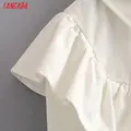 Tangada fashion women ruffles white summer dress short sleeve ladies vinteage pleated dress vestidos SL90