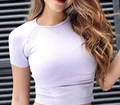 Plain Slim Fit Workout Sport T-shirt Women Quick Dry O-neck Training Fitness Crop Top Stretchy Solid Gym Running Tee Female