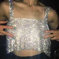 Silver Shiny Diamante Tank Top Women Low Neckline Backless Bling Rhinestone Patchwork Crop Top Night Club Chic Lady Tank Tops