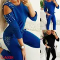 Best Price 2pcs Set Women's Off Shoulder Sweatshirt Hollow Diamond Tracksuit Gym Lounge wear Lounge Wear Jumps with FREE Worldwide Shipping!
