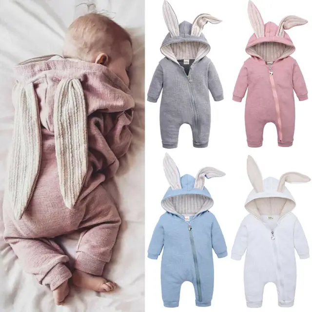 Autumn Winter Newborn Baby Boy Girl Clothes Rabbit Ears Long Sleeve Warm Zipper Cute Romper Jumpsui