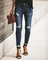 Women blue Jeans Skinny Boyfriend Hole Ripped Jeans Autumn Spring ladies high waist Zipper Fly Long Denim Casual pencil Pants