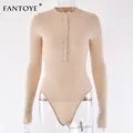 Fantoye Autumn Winter Ribbed Knitted Bodysuit Sexy V Neck Long Sleeve Bodycon Rompers Playsuit Casual Button Basic Jumpsuit