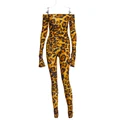 Hugcitar 2019 Tiger print slash neck slit long sleeve sexy jumpsuit autumn winter women streetwear
