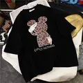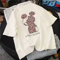 New Cartoon T-Shirt Women Kpop Cotton Leopard Print Korean Loose Oversized Tshirt Korean Cute Tee C