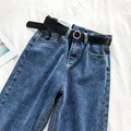 Jeans Women Solid Denim Blue All-match Casual Student Straight Pockets Plus Size Womens Trousers Fashion Harajuku Chic Females