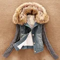 Winter Jeans Coat Outwear Fur Fleece Short Denim Jacket Long Sleeve Slim Women Warm Fur Collar Oute