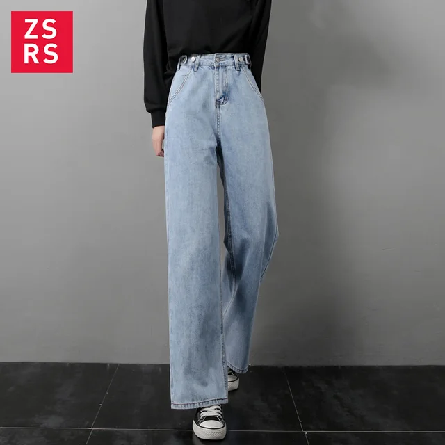 Best Price Zsrs 2019 autumn new High Waist Straight Jeans Women autumn blue Casual Loose Wide Leg Jeans Trouse with FREE Worldwide Shipping!