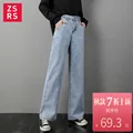Zsrs 2019 autumn new High Waist Straight Jeans Women autumn blue Casual Loose Wide Leg Jeans Trouse
