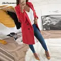 2020 New Women Long Sleeve Turn-Down Collar Outwear Jacket Wool Blend Coat Casual Autumn Winter Ele