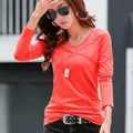 T Shirt Women Tee Tops2019 New Autumn 95% Cotton Long Sleeve V Neck Female T-Shirt White Casual Basic Classic Clothes