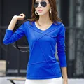 Autumn New Women Tee T Shirt Femme Slim Long Sleeve Black White Blue Office T Shirt Lady Tops Cotto