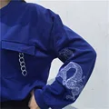 Black Embroidery Women's Sweatshirt Top Long Sleeve Chains Preppy O-neck Pullovers Tops Women 2020