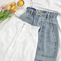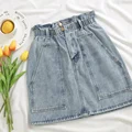 Elastic Waist Summer Women Denim Skirt Pockets Sexy White High waist jeans Skirts A-line Casual Ruf