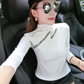 Fashion Sexy Shiny Patchwork Diamonds Beading T-shirt New Autumn Winter Top Clothes With Fleece Shirt Camiseta Mujer Tees T9N706