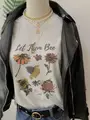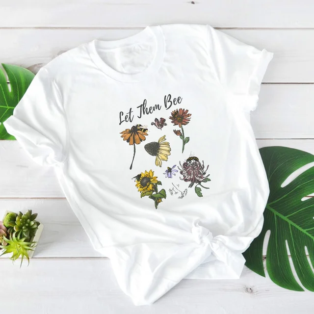 Discount Price Fashionshow-JF Let Them Bee Flowers Chart Printed T Shirt Women Short Sleeve Cotton Tee Tops Street with FREE Shipping Worldwide!