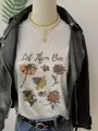 Fashionshow-JF Let Them Bee Flowers Chart Printed T Shirt Women Short Sleeve Cotton Tee Tops Street