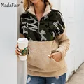 Nadafair Faux Fur Casual Oversized Hoodies Women Sweatshirt 2019 Autumn Patchwork Pockets Zip Plus Size Fleece Winter Pullover