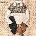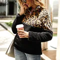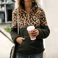 Nadafair Leopard Patchwork Plus Size Fluffy Sweatshirt Women Zip Fleece Casual Oversized Hoodie Win
