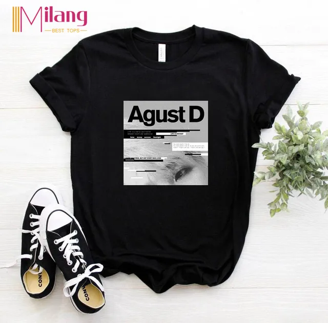Discount Price Women Agust D Black T-shirts Female Short Sleeve Tees 2020 Summer Brand Vogue Choose Clothing Girl with FREE Shipping Worldwide!
