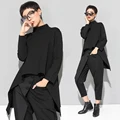 XITAO Vintage Black Turtle Neck T Shirt Women Plus Size Kawaii Casual Long Sleeve Irregular Tops Ko